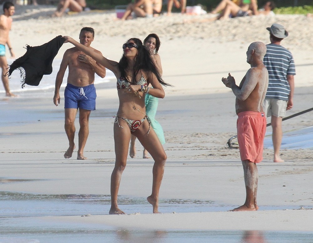 The President of JustFab is frolicking on the beach in St Barts with music mogul Russell Simmons and his much younger girlfriend Hana Nitsche a day before Christmas.