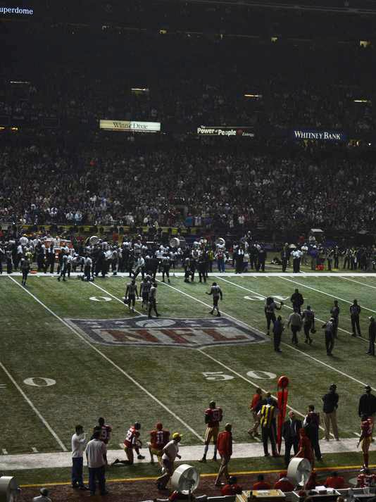 Phil Simms' microphone cut out mid-sentence when half of the power at the Superdome went out, which caused a delay in the game.