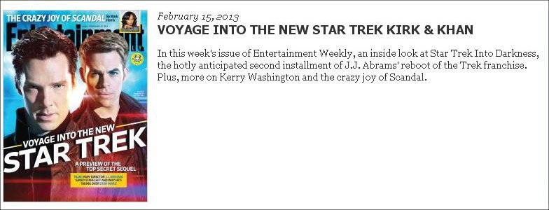 Entertainment Weekly stirs online frenzy by putting a headline that seemingly confirms Benedict Cumberbatch's role as classic villain Khan.
