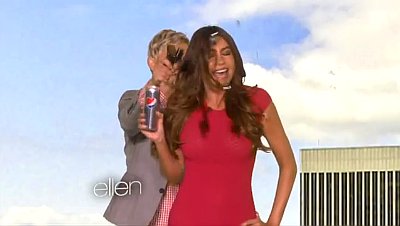 The 'Ellen DeGeneres Show' host tries to distract the ' Modern Family' star from reading her lines for Diet Pepsi commercial.