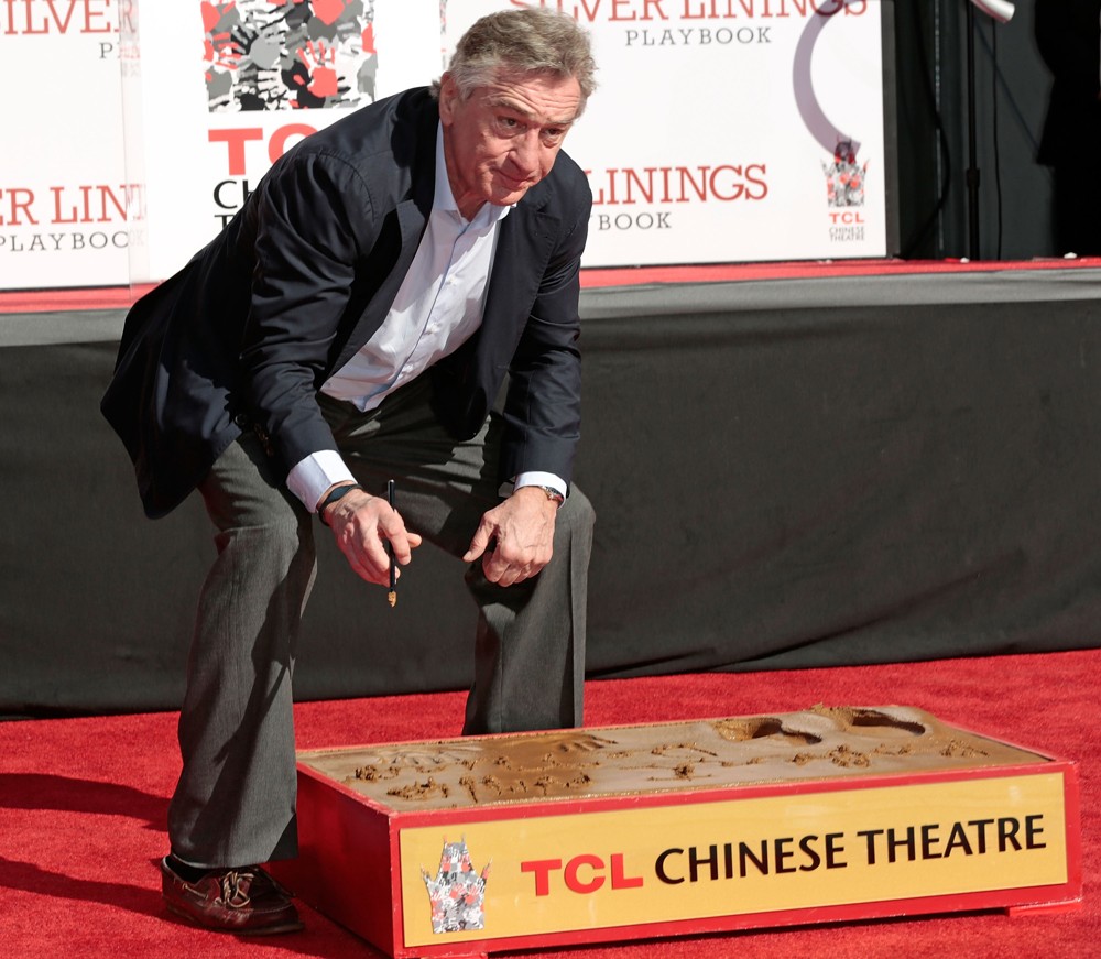 The insecure mob boss in 'Analyze This' leaves his marks near those of Marilyn Monroe, Elizabeth Taylor, Brad Pitt, George Clooney before he attended Oscar Luncheon.