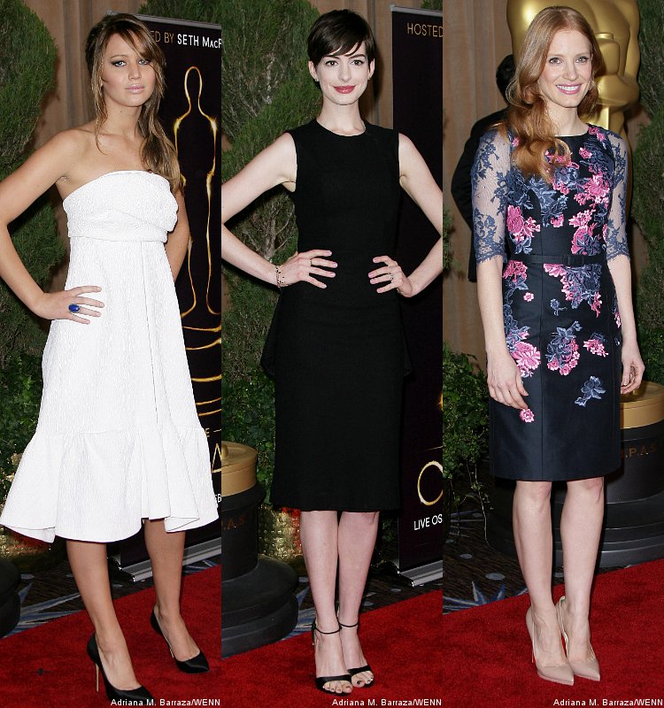 The three actresses are among twenty one nominees of the 2013 Academy Awards who gather around in the fun-filled lunch event taking place at the Beverly Hilton Hotel on Monday, February 4.