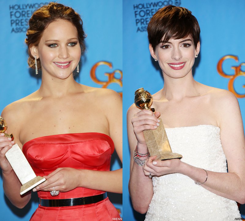 Lawrence is named the Best Actress in Musical or Comedy, Hathaway wins Best Supporting Actress in a Motion Picture gong, while Quentin Tarantino grabs Best Screenplay award.